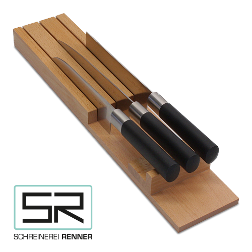 *Die Tiefe des Messerblocks wird passend zum Besteck- oder Mehrzweckeinsatz angefertigt.
