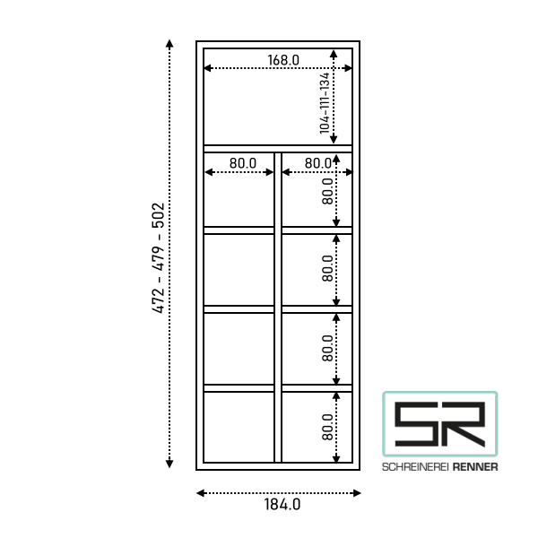 Dieser Flaschenhalter eignet sich hervorragend für die stabile Lagerung von 8 Flaschen mit einem Durchmesser bis 80 mm. Der Halter ist erhältlich in 4 Ausführungen sowie in 3 gängigen Schubladentiefen: 472 mm (u.a. Blum Tandem, Legra), 479 mm (Grass Nova) und 502 mm (Ikea-Küchen Faktum, Metod). Abweichende Maße und Einteilungen sind auf Wunsch möglich. Verwenden Sie dazu bitte unser Kontaktformular.
