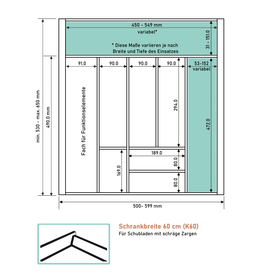 4. Geben Sie nun die Innenmaße Ihrer Schublade (B x T) abzüglich 2 mm Toleranz ein.