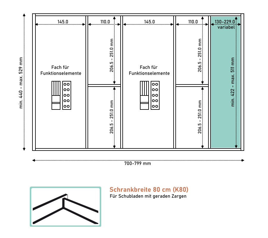 4. Geben Sie nun die Innenmaße Ihrer Schublade (B x T) abzüglich 2 mm Toleranz ein.