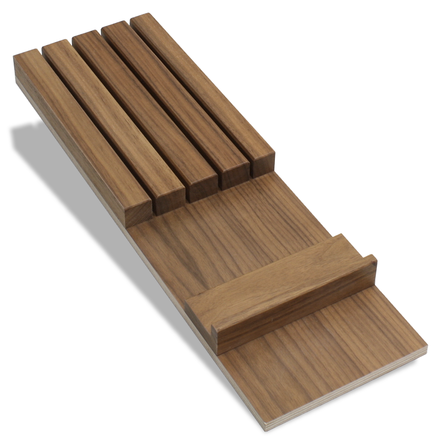 Messerblock für die Lagerung Ihrer Kochmesser in einer Schubladen. Erhältlich für Schubladentiefen 462, 472, 479, und 502mm (Ikea). Abweichende Maße auf Anfrage möglich.